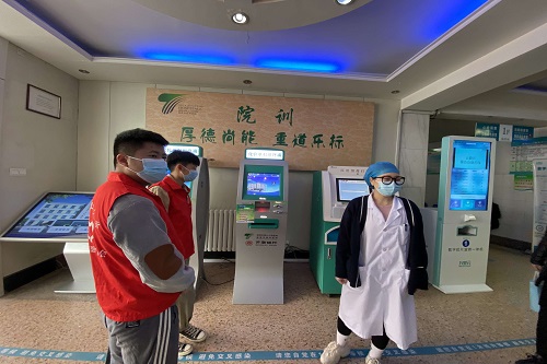 活动开始,志愿者们与医院工作人员进行沟通交流与工作交接,志愿服务内容主要包括:帮助病人取号挂号;打印CT、MR、DR等胶片;为病人家属解答问题等。志愿者们耐心热情,对来院人员的问题进行细心解答,获得了医院工作人员的一致好评。志愿者们表示能够和白衣天使一起“战斗”感到非常荣幸,为病人排忧解难更是非常有意义的事情。