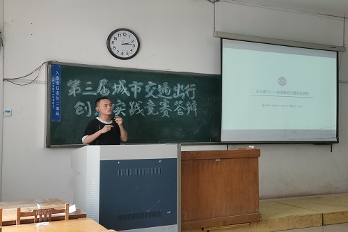 此次比赛采用线上线下“双线共行”的评比方式。 竞赛答辩开始之前,参赛选手们自行组队,并完成小组PPT的制作。答辩中,同学们将作品结合需求管理,提出多种利于改善交通系统运转的提议,以此提高城市空间的价值,从而改善交通出行,使城市交通更加绿色低碳、空间得到更好的利用。其中,第七组队伍代表姜正宇以“智能出行”为主题,对淄博市的停车问题做出了多方面的分析,并提出了创新性的解决方案。随后,杨光杰对其答辩提出了建议,他指出,对于项目基础建设,应详细地分析施工地的最优选择;对于高峰路段的规划分析,要注重于基础建设的结合。活动最后,活动负责人将评委们的打分卡收回、统计,比赛结果将于近期公示。