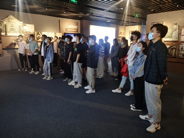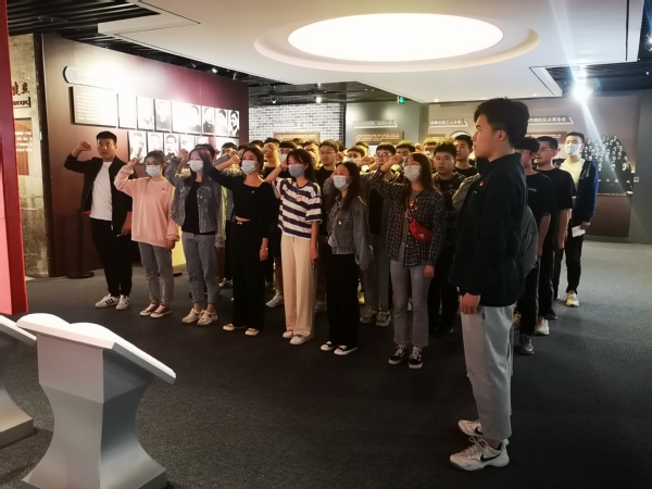 参观中,全体党员庄严举起右手,面向党旗,重温入党誓词,进一步坚定理想信念、强化党员意识。