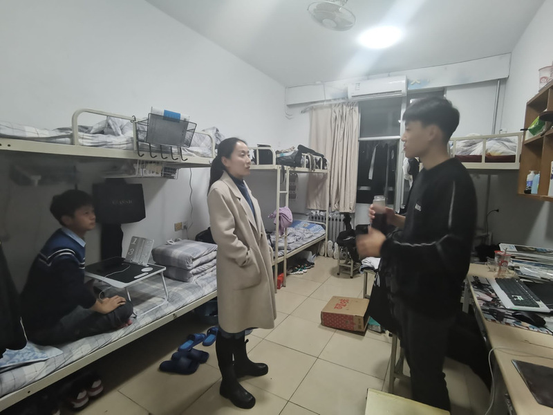 辅导员在摸排员工归寝情况的同时对员工宿舍电线、插口、用电器等可能存在安全隐患的角落进行排查,对员工烟民所在宿舍,重点强调了禁止在公寓内抽烟问题,提醒同学们务必重视宿舍安全,养成良好生活习惯。同时要求宿舍长和宿舍安全员要严格履职,督促注意安全、遵守规定,带头营造良好的宿舍生活环境。排查过程中辅导员还与同学们亲切交谈,询问大家平时的学习、生活情况,为员工们在日常学习、生活、工作中遇到的问题答疑解惑。