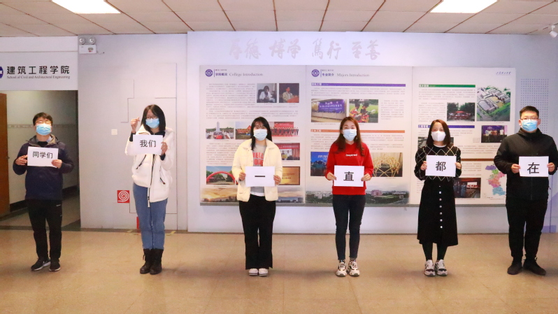 “网红”主持人幽默风趣的开场拉开了直播帷幕。开篇校园十佳歌手一首青春动感的歌曲《new boy》奠定了整场直播热烈欢快的基调,线上互动一片火热。歌曲《孤勇者》坚毅豪迈的歌词鼓足了同学们对抗疫情的勇气,电子钢琴独奏《克罗地亚狂想曲》激昂高亢的旋律展现了同学们战胜疫情的决心,现代舞《Forever Young》活泼动感的舞步展示了同学们的青春活力,《新疆舞》优美曼妙的舞姿带大家领略异域风情,歌曲《说了再见》《你还要我怎样》《You raise me up》饱含深情的歌声让大家深深陶醉,辅导员动情演绎的歌曲《蜗牛》,将不畏困难奋力向前的正能量传递给直播间的每一位同学。师生合唱《彩虹》让大家感受到师生之间的亲密无间,也告诉大家风雨过后会有彩虹。公司全体在校辅导员合唱的歌曲《奇迹再现》,铿锵的旋律、欢快的歌声,感染着直播间的每一个人。全体辅导员将印有文字的纸张拼接成“同学们,我们一直都在”暖心而又坚定的话,将整场直播推向高潮。直播过程中还穿插福袋、评论截图等抽奖环节,整场线上表演在欢乐、热烈、有序的氛围中进行。