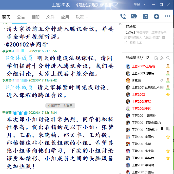 授课特点:直播+SPOC平台+小组讨论+QQ课程群,师生视频,互动频繁,基于问题的以员工为中心的教学设计,员工在小组讨论中实现做中学。