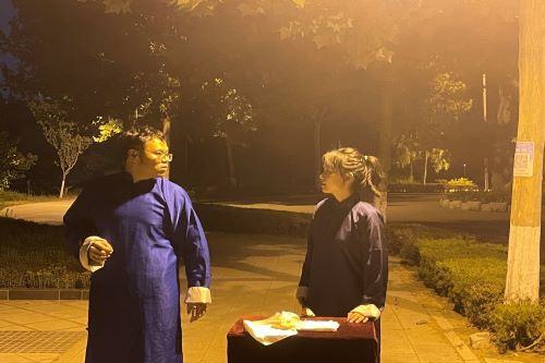 活动伊始,报幕人毕新宇上台对前来观看演出的同学表示热烈的欢迎,并宣布路演随即展开。此次演出以丁胜晋、郑博文表演的《有话好好说》作为开场,两位表演者凭借幽默风趣的语言与动作,吸引了观众们的注意,令人忍不住叫好,为此次路演奠定了良好的开端。随后,日新曲艺社成员带来了经典相声《天文研究》和《白毛女》,表演者形神具备,融入其中。传统相声《白事会》、《白蛇传》和《日本梆子》的精彩演绎更是引得现场观众捧腹大笑,许多观众拿出手机拍照。活动气氛被推向高潮。其中,杨昕燃与王静菲搭档表演的《白蛇传》,通过搞笑幽默的语言与丰富的肢体动作,展现包袱不断,让人忍俊不禁。相声一场接着一场,但观众的脸上却始终洋溢着欢快的笑容。活动最后,日新曲艺社全体成员上台谢幕并对在场观众表示感激。