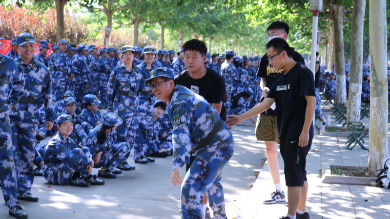 最后进行了“传递数字”的游戏,这考验着同学们彼此之间的信任以及默契程度。在游戏中,失败的一队需要齐声高唱《团结就是力量》,加深同学们对团结重要性的理解。活动最后全体军训学员合影留念,活动也在欢乐的氛围里圆满结束。