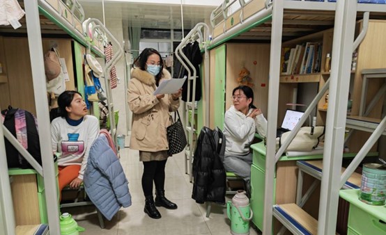 排查的同时,辅导员与同学们亲切交谈,询问员工们新学期以来的学习生活状态,对同学们关切的问题给出意见建议,为同学们提供学业与生活指导。