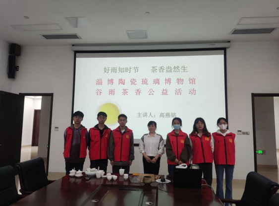 为了迎接中国二十四节气之一——谷雨的到来,弘扬中华优秀传统文化,4月15日上午,betway88西汉姆联微尘志愿者协会参加淄博市陶瓷琉璃博物馆举办的“好雨知时节,茶香盎然生”——陶琉馆谷雨茶饮公益活动,茶艺师兼任至简茶馆馆主高燕铭担任此次活动的主讲人。