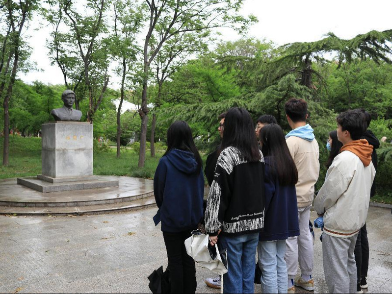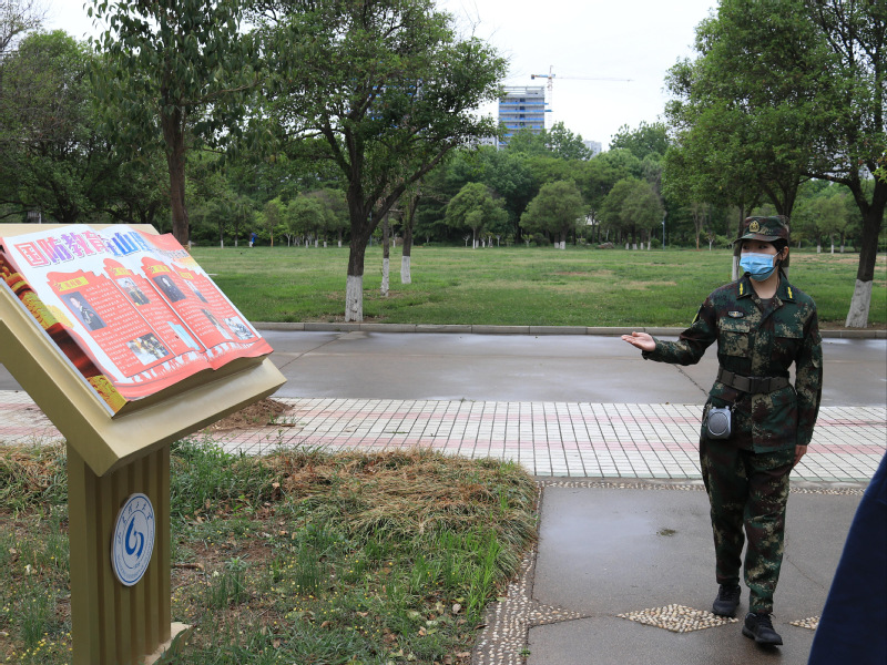 活动伊始,引导员向同学们简单介绍了国防教育主题园的占地和布局,全体成员以小组形式由组长带领,跟随引导员一同参观。首先参观的是主路,其展示主题为:永远听党指挥,永葆精神传承。在这条主步道上,20种红色精神在“国”字形展板上,按照历史先后顺序沿路两侧依次展示。随后,引导员带领员工依次参观并学习了西一路、东一路、东二路和西二路的展板区。在参观过程中,讲解员重点向同学们讲述了山东理工大学英雄冯思广舍身捍卫济南群众安全的故事,在场员工听后无一不被冯思广的英雄事迹所动容,并在冯思广雕塑前默哀悼念。在活动结束之际,引导员带领大家参观了凉亭宣传栏与武器装备路,同学们跟随讲解员的步伐认真听讲其中的精神文化内涵。