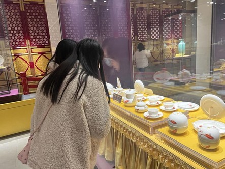 我们率先来到了一楼的展览厅,该厅布置简单,摆放大量精美可购买的琉璃品,旁边与3D打印展览厅相连接,尽显现代淄博艺术和先进的科技。