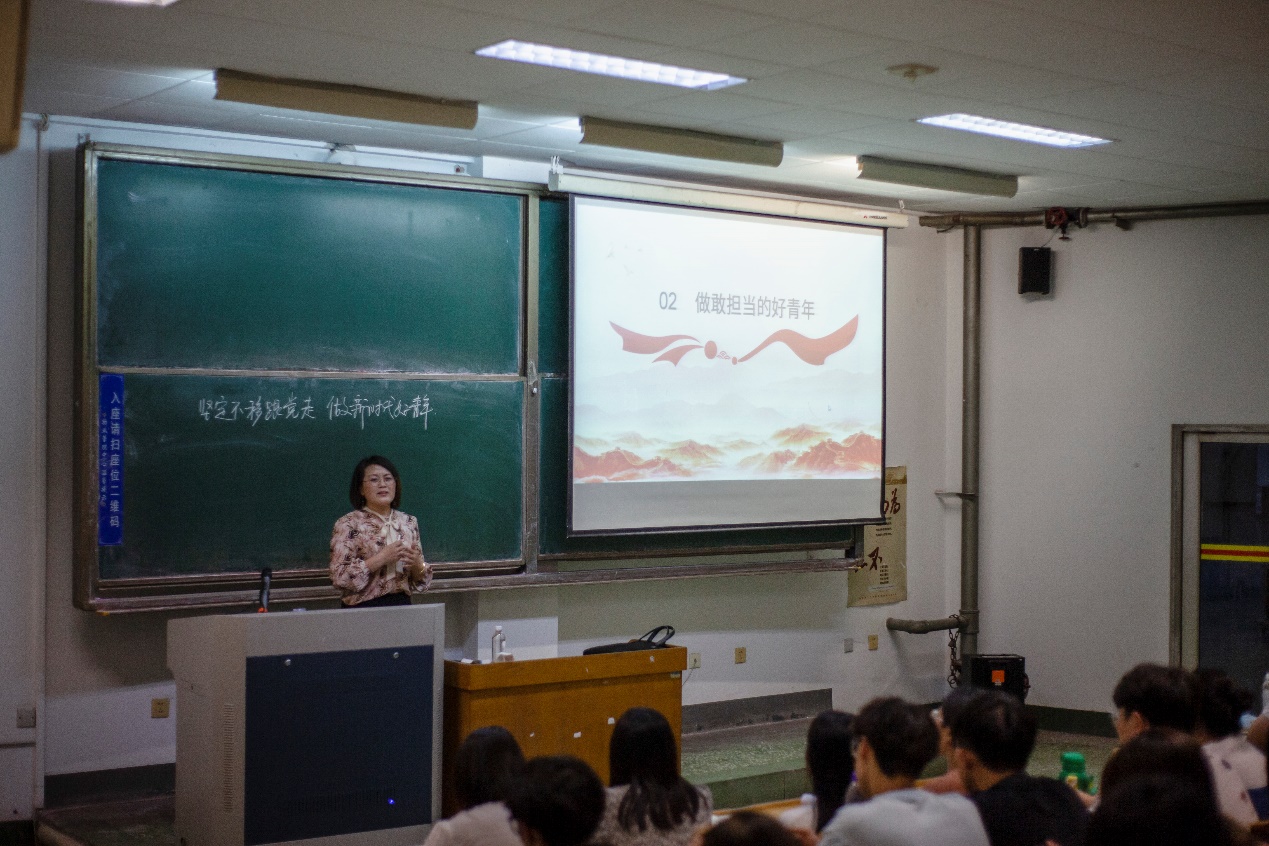 最后,黄文娟深情勉励同学们,“千万别在应该吃苦的年龄选择逃避,千万别在应该奋斗的年纪选择安逸”,新征程是充满光荣和梦想的远征,希望同学们严格要求自己,坚定决心完成青年使命,做新时代的好青年,谱写青春华章。