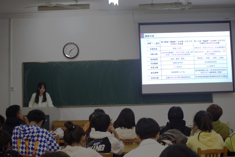 随后,公司科技创新方面工作人员向同学们介绍其他相关科技创新大赛以及申报要求,提到参加科创大赛对于同学未来的学习工作有很大帮助,希望各班班长、学习委员积极向班级内同学介绍科技创新大赛,让更多的同学参与进来。