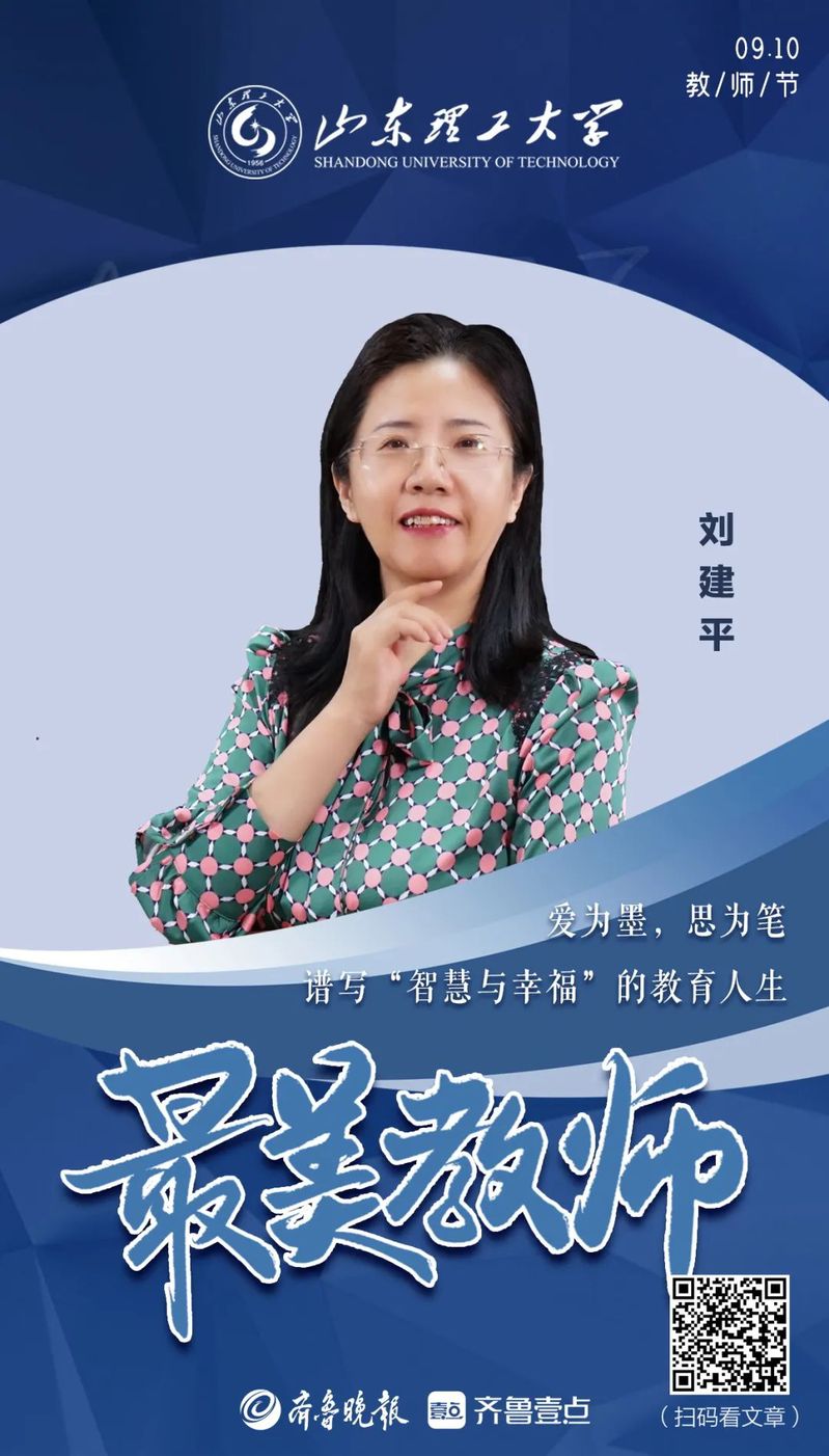 刘建平,建筑工程公司教授,从教29年。这一路,从普通教师到教学名师,从校级课题到国家级课题,从校级成果奖到省级成果奖,潜心教书,悉心育人,用爱去教育和感染员工,用智慧点燃员工心灵之火。期间,她收获了“山东省教育系统女职工建功立业标兵”等荣誉,也找到了属于自己的用爱与执着谱写“智慧与幸福”的教育人生