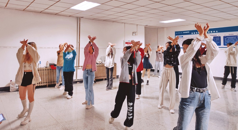 活动开始前,梦想文艺社成员对北大厅进行清理,保证同学们有一个良好的舞蹈环境。首先,韩贝尔带领现场同学熟悉音乐节拍,就舞蹈强度和节奏与同学们进行交流和探讨,接着再慢慢加入动作,一边在前面领舞,一边详细地为同学们介绍动作要领,引导同学们完成一些基础的舞蹈动作。尽管同学们的舞蹈基础各不相同,但是在现场工作人员的帮助下,同学们都能顺利完成此次基础的舞蹈教学。随后,参加比赛的同学通过自主练习,在掌握基本舞蹈知识和技能后,将拍摄好的舞蹈片段提交至活动指定邮箱,最终社团成员根据提交的舞蹈片段进行打分和投票,评选出优秀的参赛作品。