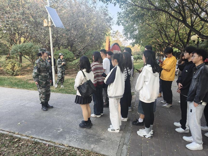 首先,引导员为同学们介绍了国防教育主题园的规划布局。主题园主要依托园区内7条步道,划分7大专题,分别展示光荣传统和红色基因、淄博革命印记和红色地标、淄博籍将军和英模、征兵政策和优秀退伍军人代表、理工大学国防教育和征兵工作成效、国防和军队建设新成就新气象、先进装备和大国利剑等方面。接着,引导员带领同学们由贯通南北的主步道进入园区,其主题为:永远听党指挥,永葆精神传承。