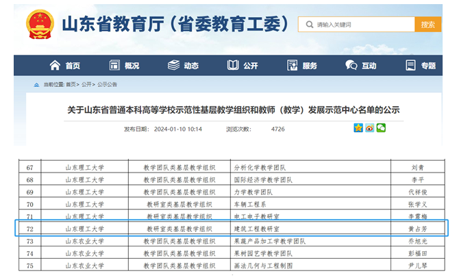 2024年1月10日,山东省教育厅下发了《关于山东省普通本科高等公司示范性基层教学组织和教师(教学)发展示范中心名单的公示》,公司“建筑工程教研室”获批山东省普通本科高等公司示范性基层教学组织(教研室类基层教学组织)。