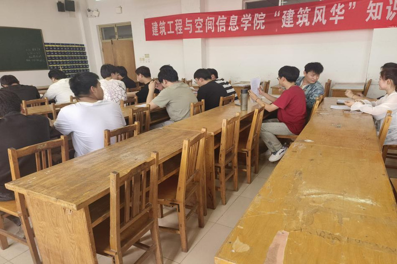 此次知识竞答比赛以中外建筑知识为题,两人一组,分组限时竞赛,成绩以小组成绩为最终成绩,竞答结束后将进行成绩汇总并排名。活动开始前,工作人员将总题库发至活动群中,参赛人员可进行准备。比赛开始,社团工作人员讲解比赛规则并强调比赛纪律,随后,工作人员随机发放试题,两人作答一份试卷,由工作人员计时。在比赛过程中,同学们全神贯注地解答问题,展现出了对建筑文化知识的渴求与追求。比赛结束后,由工作人员统一收取答卷,判题人员将本着公平公正的原则进行打分评选,最终竞赛结果将在活动群公示。同学们在较短时间内完成了高质量的答卷,体现了同学们具有扎实的专业知识基础和扎实的逻辑思维能力、分析问题的能力。