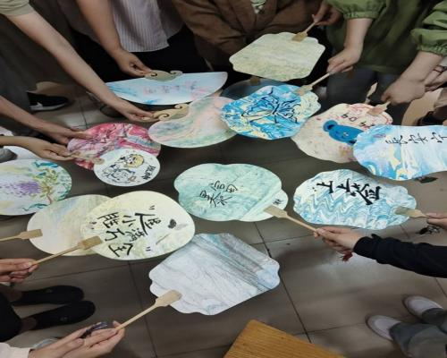 活动开始,同学们根据自己的喜好和想法,选择不同的扇子,然后利用各种颜色的染料,制作出属于自己的独一无二的扇子。有的同学选择制作具有古典韵味的扇子,有的同学则大胆用色,制作出色彩鲜艳的扇子,无论是哪一种创作方式,都展现了同学们丰富的想象力和对美的追求。在活动的过程中,同学们互相交流创作心得和经验,分享着各自的设计灵感,整个活动现场洋溢着欢声笑语,充满了创意和活力。活动最后,同学们各自展示了他们的作品,各种各样的扇子,五彩缤纷,美轮美奂。不少同学还不忘拿出手机拍下美好的瞬间,留作纪念。
