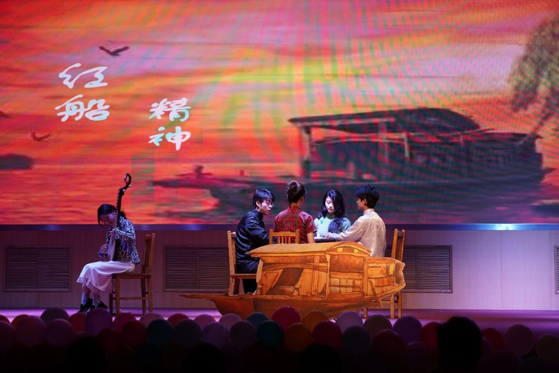 比赛现场气氛热烈。经济2303班团支部通过不同历史人物视角,生动讲述中国故事;生教2302班团支部演绎老员工在学习、生活中的成长与蜕变,传递、发扬冯思广精神;广告2301班团支部发挥专业特长,通过团组织镜头展示当代青年风采;工管2301班团支部载歌载舞展示了多民族特色,铸牢中华民族共同体意识;软件2302 班团支部以皮影戏为灵感,展现革命年代青年觉醒的历程。各公司团支部百花齐放,舞台展示充满张力与激情,展现了公司团员青年奋发向上、矢志图强的精神风貌。活动现场还开展了共青团知识抢答竞赛与趣味互动。