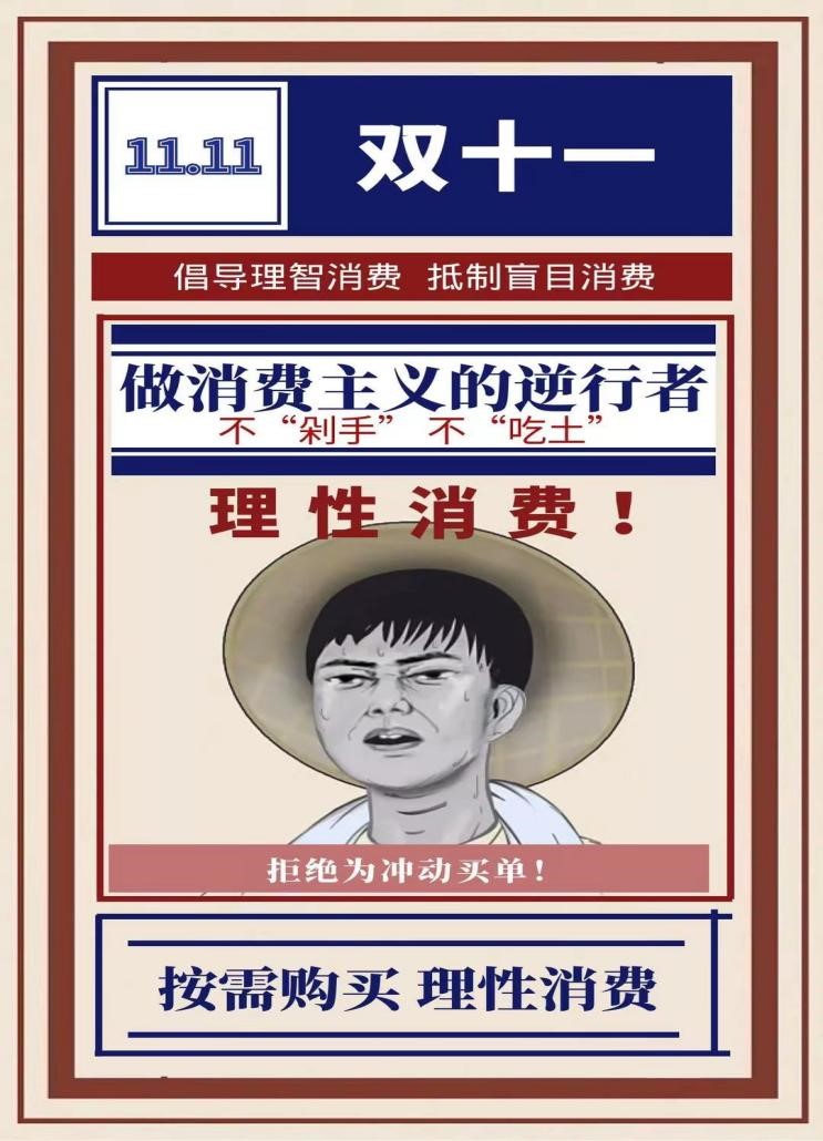 此次大赛紧扣双十一购物狂欢节点,参赛者需围绕“做消费主义的逆行者”这一主题设计海报。作品要通过独特的创意和色彩呈现对主题的理解,传达理性消费理念。在此次活动中,收到了众多同学富有创意的作品,同学们通过自己的创意,用富有创意的海报表现了理性消费的理念,表达了抵制盲目消费主义的决心。在这个物欲横流的时代,人们应当警惕盲目消费的陷阱。过度追求物质享受,不仅会导致资源的浪费,还会让心灵逐渐被贪婪和空虚所占据。真正的幸福不在于拥有多少名牌奢侈品,而在于内心的满足和对生活的深刻理解。