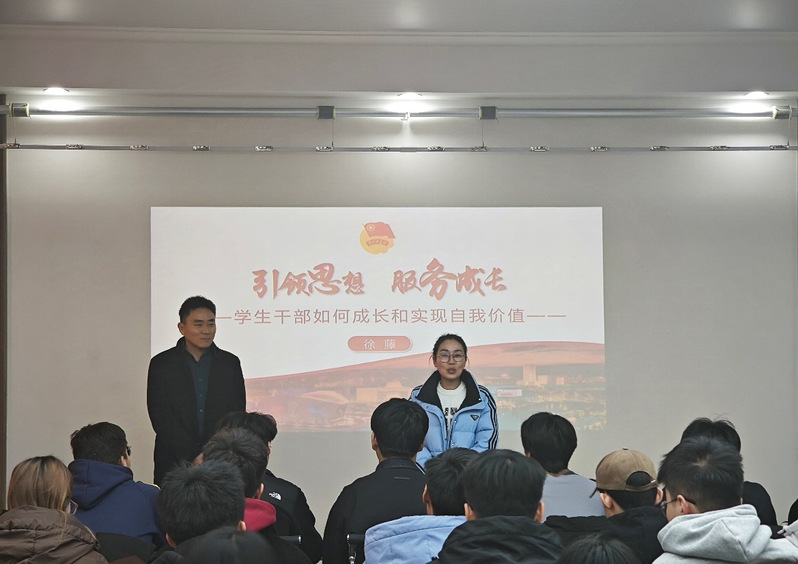 徐藤以“员工干部如何成长和实现自我价值”为题,旁征博引,结合丰富实例,讲述了员工干部应该具备的各项能力和如何在组织活动中锻炼成长成才。在讲到员工干部成长要素时,他强调“能力提升是基石”,并详细阐述员工干部需在组织协调、沟通表达、时间管理等多方面锤炼本领。他以校园大型文艺晚会筹备为例,讲述如何统筹节目安排、协调场地物资、对接演职人员,他表示,活动复杂流程中每个环节都是一个良好的锻炼契机。同时,徐藤强调“思想引领是航标”,鼓励员工干部紧跟时代步伐、领会公司育人理念,保持思想先进性,带动身边同学积极向上。