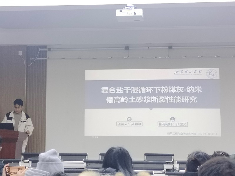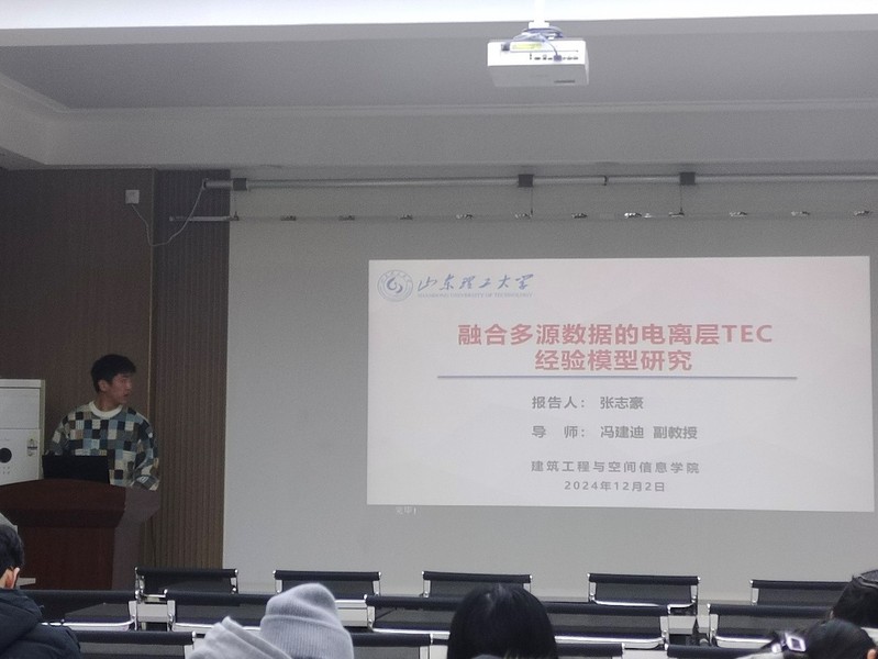 本次学术交流的报告者分别是二年级的马雪冰、孙明凯、胡瑞雪和张志豪。报告主题涵盖了多个前沿研究方向,主要包括:“基于FIS-YOLOv8算法的滑坡识别研究”“粉煤灰-纳米偏高岭土复合水泥砂浆在干湿循环作用下断裂性能的研究”“士工膜替代屋面板温度筋的性能研究”以及“融合多源数据的电离层TEC经验模型研究”。四位同学深入分享了各自的研究成果和学术思考,现场气氛活跃,互动交流充分。