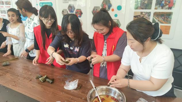 宣讲结束后,员工第三党支部党员带领侨胞们制作艾草花束、包粽子,协助开展汉服文化讲解活动,通过民俗体验增进侨胞对端午习俗的了解,进一步营造和谐友爱的社区氛围,丰富居民文化生活。