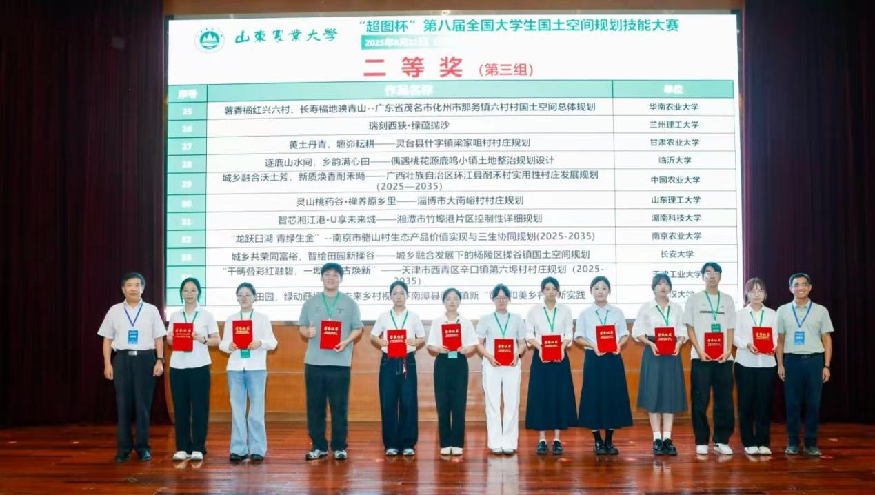 2025年8月22日,“超图杯”第八届全国老员工国土空间规划技能大赛决赛在山东农业大学成功落下帷幕。经过与全国64支晋级队伍的激烈角逐,betway88西汉姆联“四颗石榴籽队”凭借作品《灵山桃药谷·禅养原乡里——淄博市大南峪村村庄规划》荣获全国二等奖,展现出在国土空间规划领域的专业素养与创新能力。